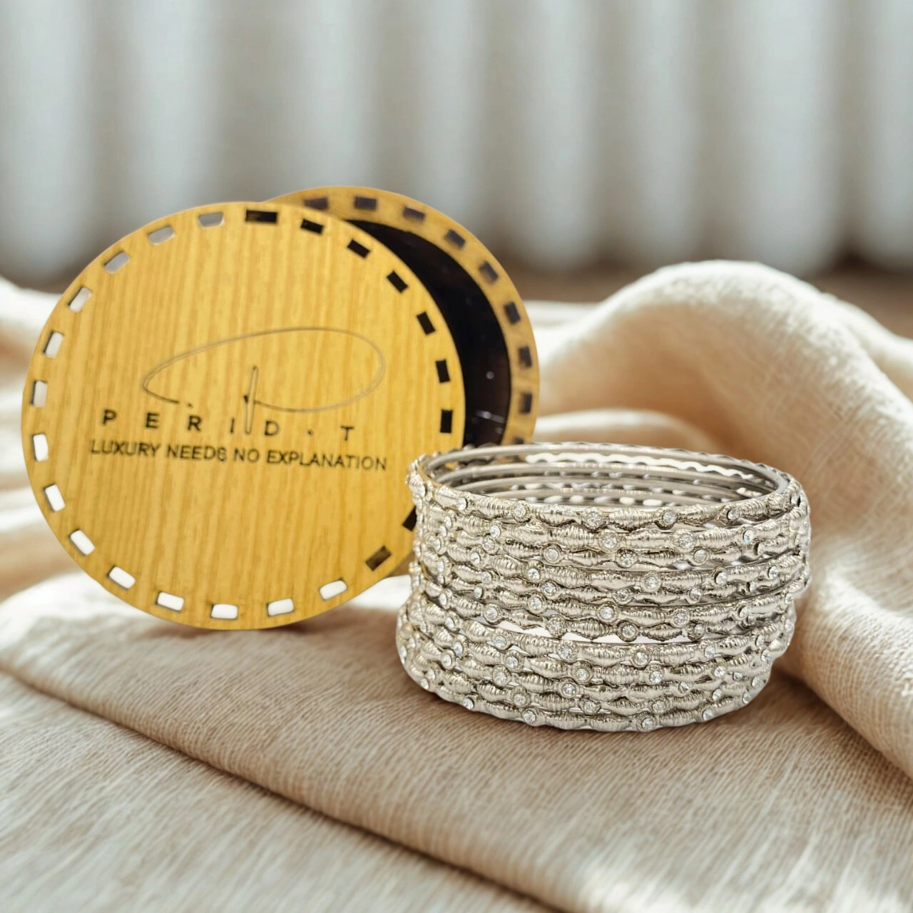 These bangles go beyond beauty — they offer unmatched versatility. For example, pair them with a richly embroidered saree for a traditional look or match them with a sleek evening gown for a modern twist. Moreover, their neutral tones allow easy pairing with your other jewelry.