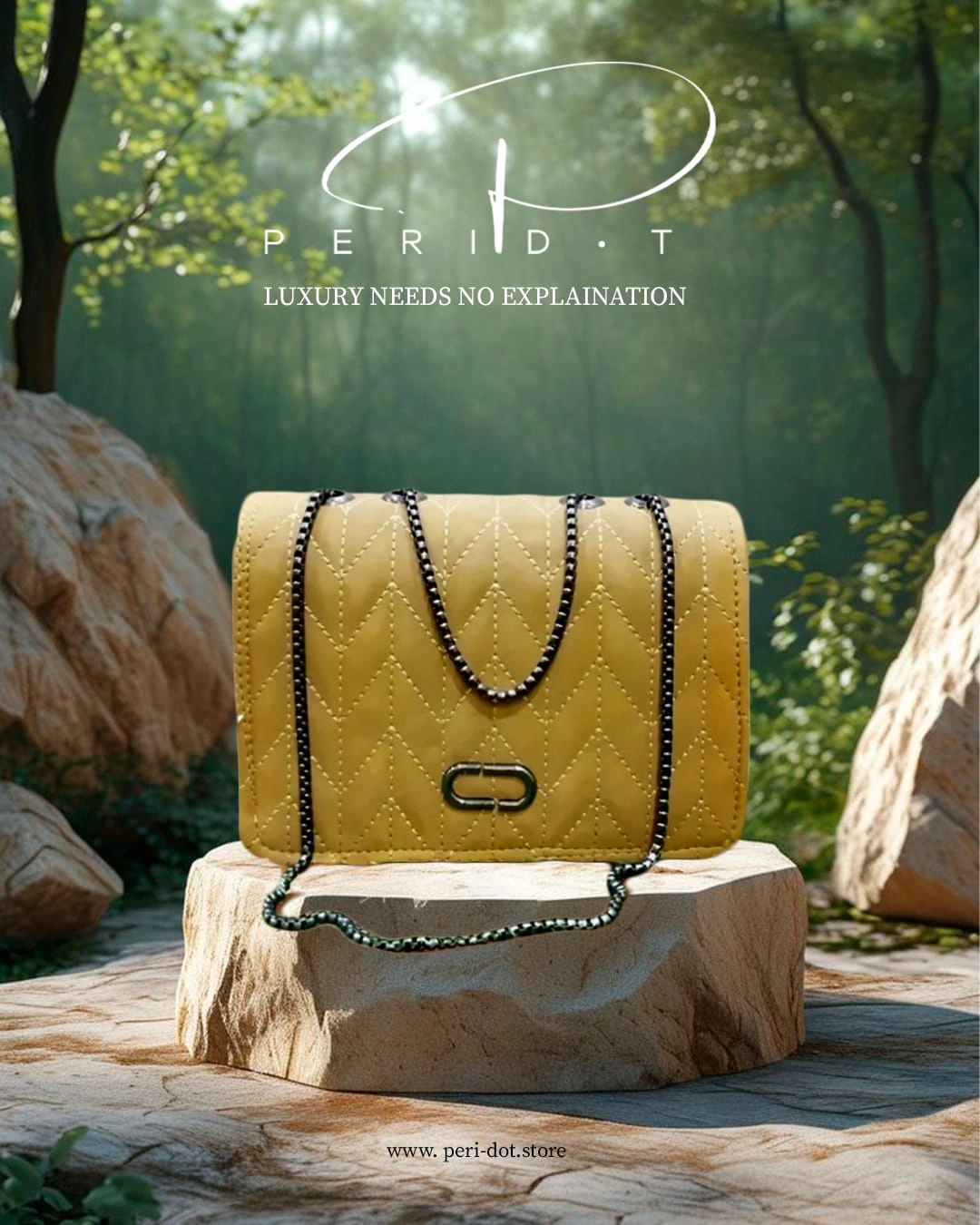 Make a bold fashion statement with the PERIDOT Sapphire Quilted Chain Bag – a luxurious fusion of style, texture, and grace. Designed for modern women who love sophistication, this midnight blue shoulder bag features premium quilted stitching, gold-toned chain straps, and a structured silhouette.